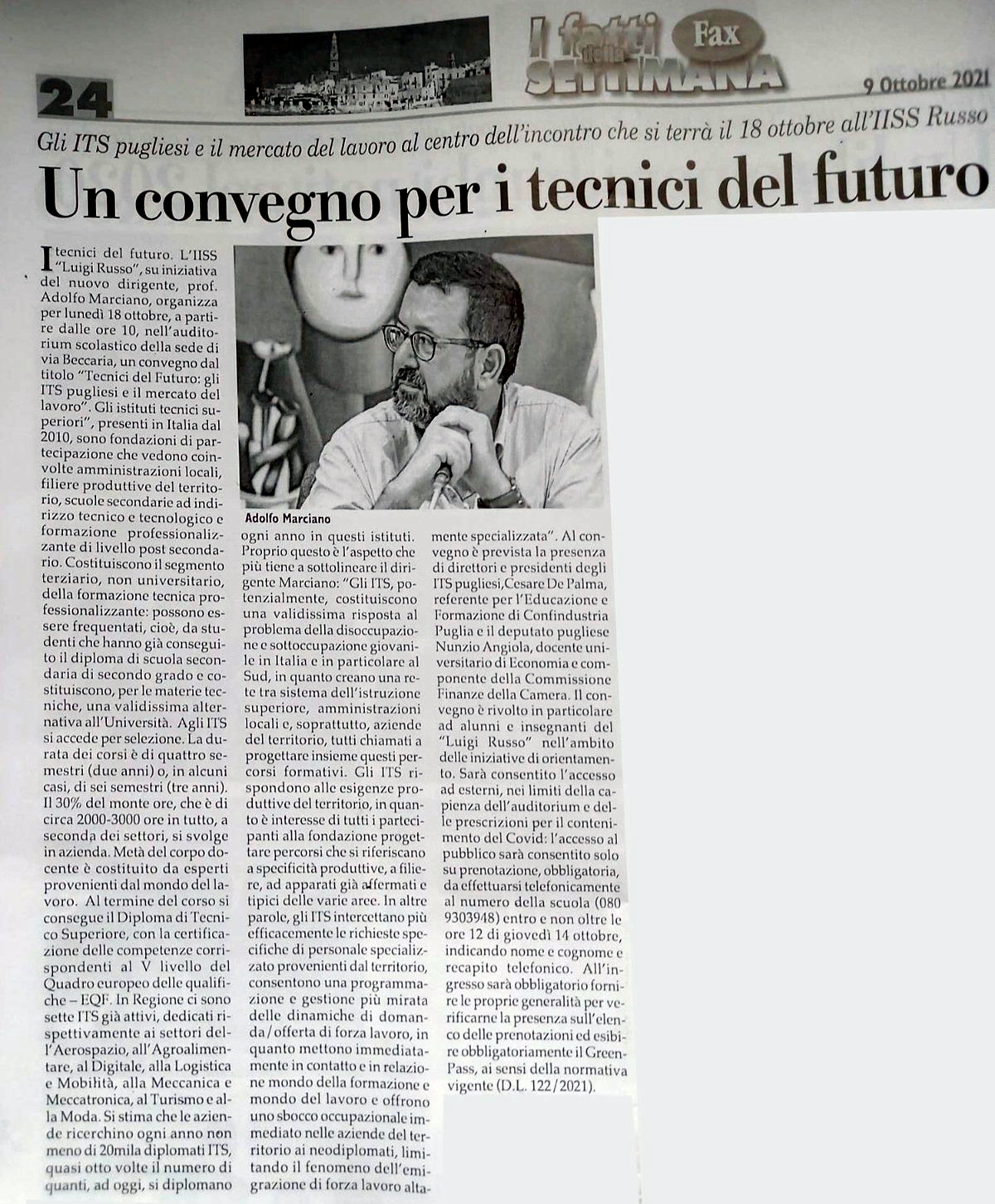 “Tecnici del futuro: gli ITS pugliesi e il mercato del lavoro”, incontro al “Luigi Russo” – FAX Monopoli 9 ott 21