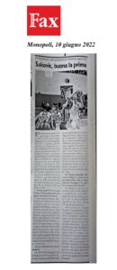 Sakovic buona la prima — FAX Monopoli del 10 giugno 2022