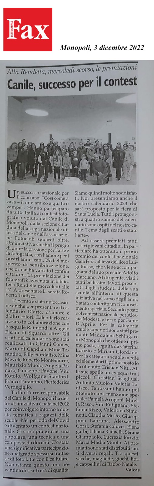 Canile successo per il Contest, mercoledì 30 novembre le premiazioni – FAX Monopoli del 3 dicembre 2022