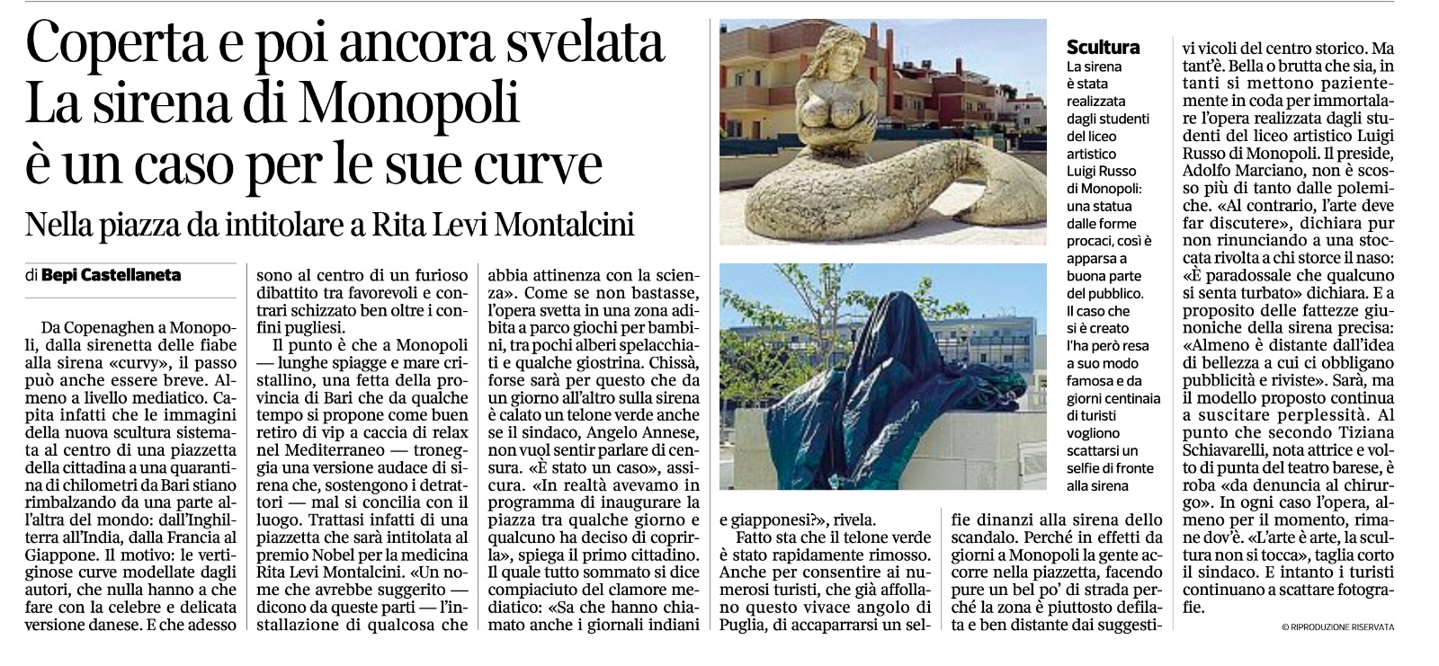 Coperta e poi ancora svelata. La sirena di Monopoli è un caso per le sue curve — Corriere della sera del 1 maggio 2023