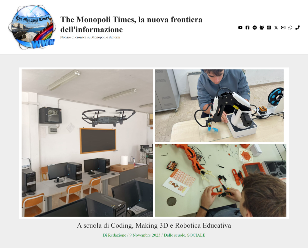 A scuola di Coding, Making 3D e Robotica Educativa – The Monopoli Times del 9 novembre 2023