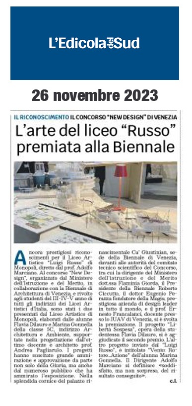 L’arte del liceo “Russo” premiata alla Biennale – L’Edicola del Sud del 26 novembre 2023