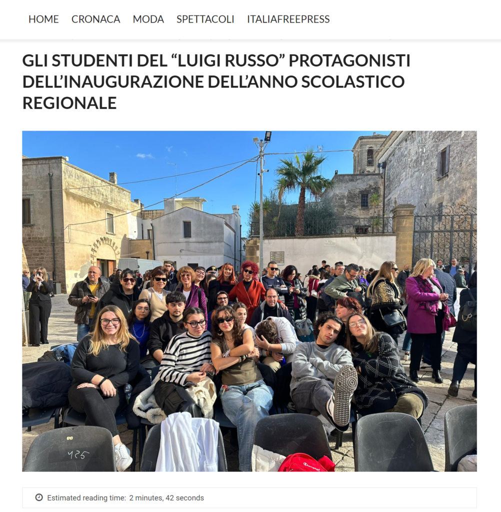 Gli studenti del “Luigi Russo” protagonisti dell’inaugurazione dell’anno scolastico regionale – MonopoliPress del 30 novembre 2023