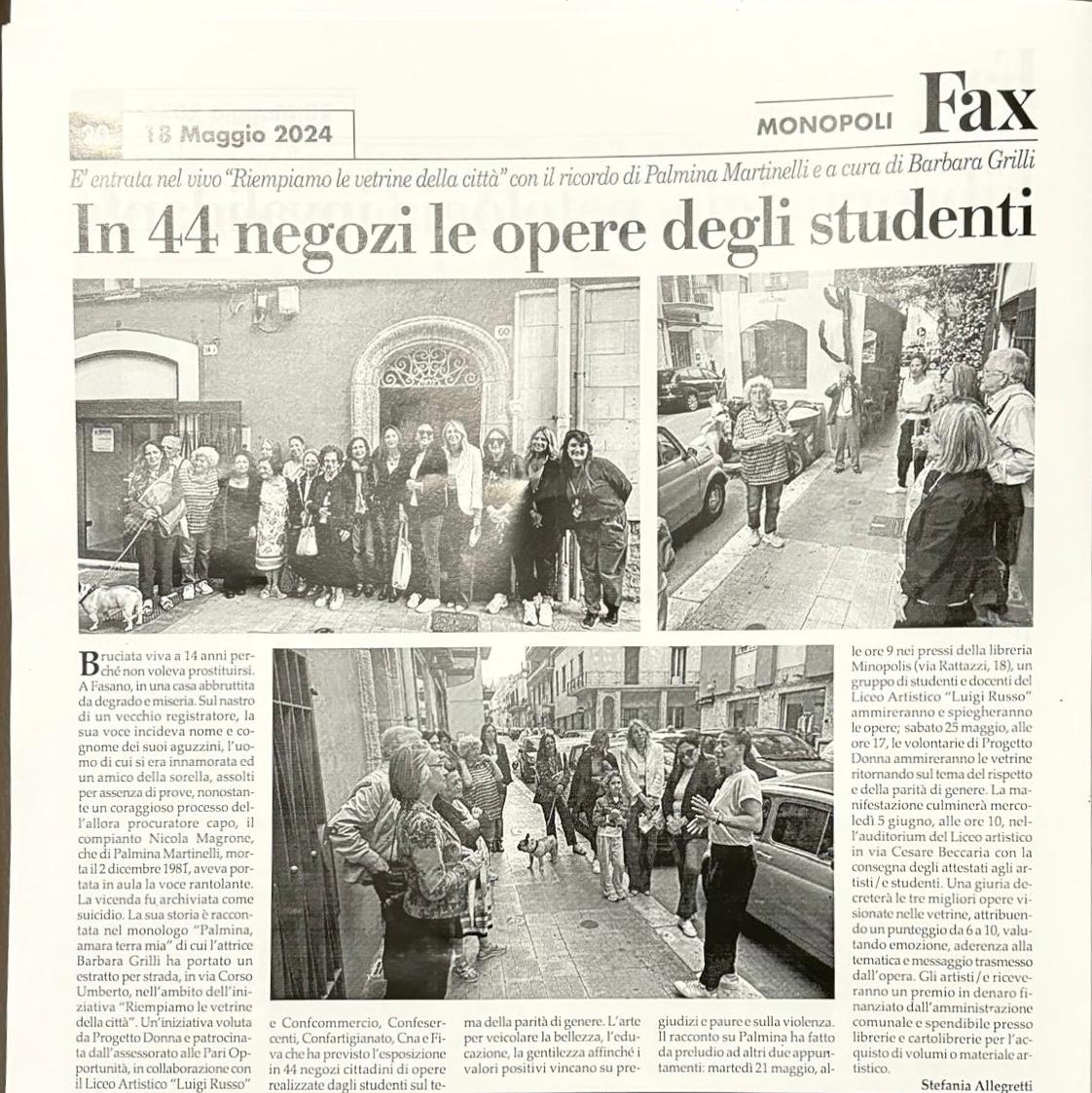 In 44 negozi le opere degli studenti – FAX Monopoli del 18 maggio 2024