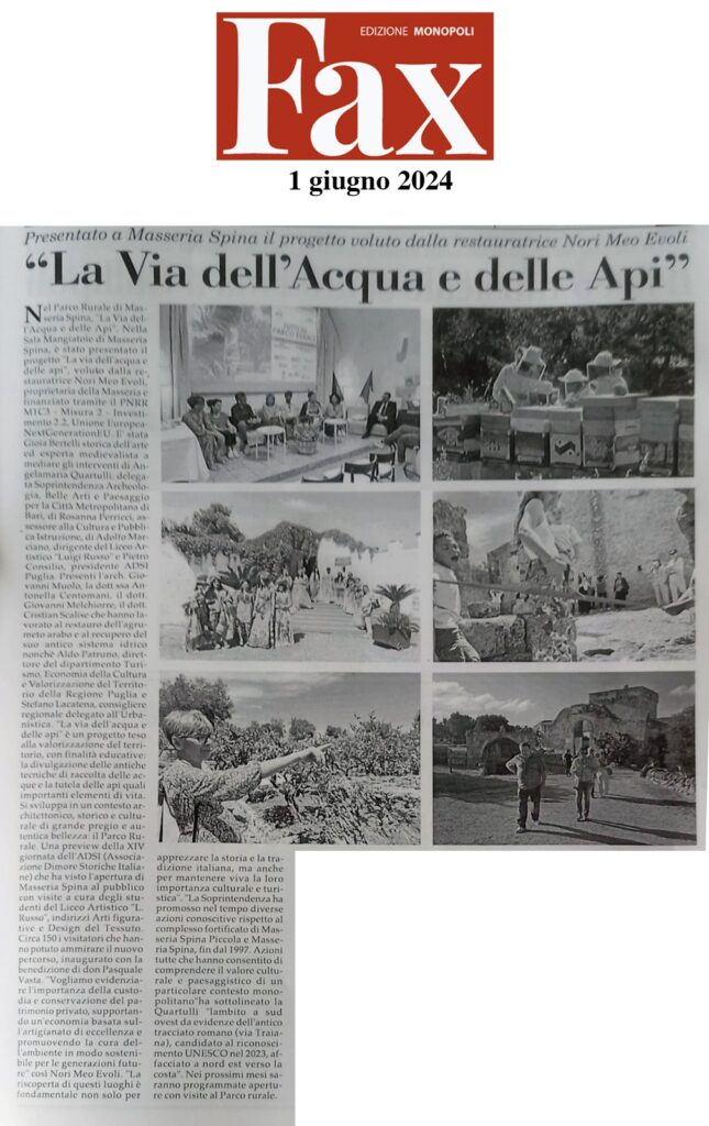 La Via dell’Acqua e delle Api – FAX Monopoli del 01 giugno 2024