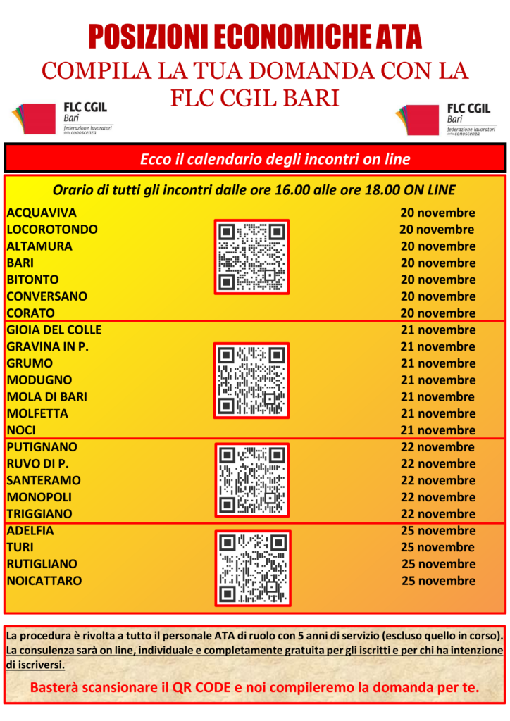 Per ulteriori informazioni, consultare l’allegato alla presente che esplica nel dettaglio quanto in oggetto. Documenti ELENCO DI INCONTRI POSIZIONI ECONOMICHE ATA pdf - 165 kb