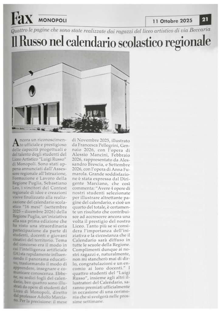 Il Russo nel calendario scolastico regionale – FAX Monopoli del 11 ottobre 2025