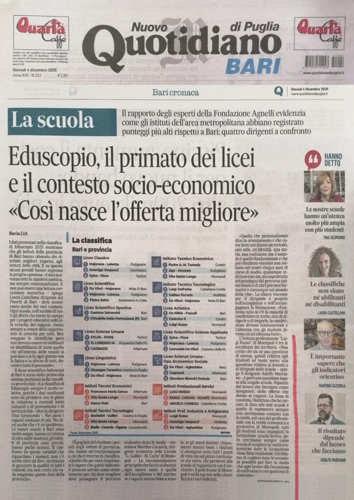 Il primato dei licei e il contesto socio-economico “Così nasce l’offerta migliore” – Nuovo Quotidiano di Puglia – Bari – del 4 dicembre 2025