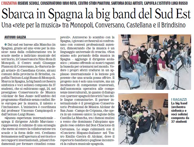 Sbarca in Spagna la big band del Sud Est – La Gazzetta del Mezzogiorno del 24 marzo 2026