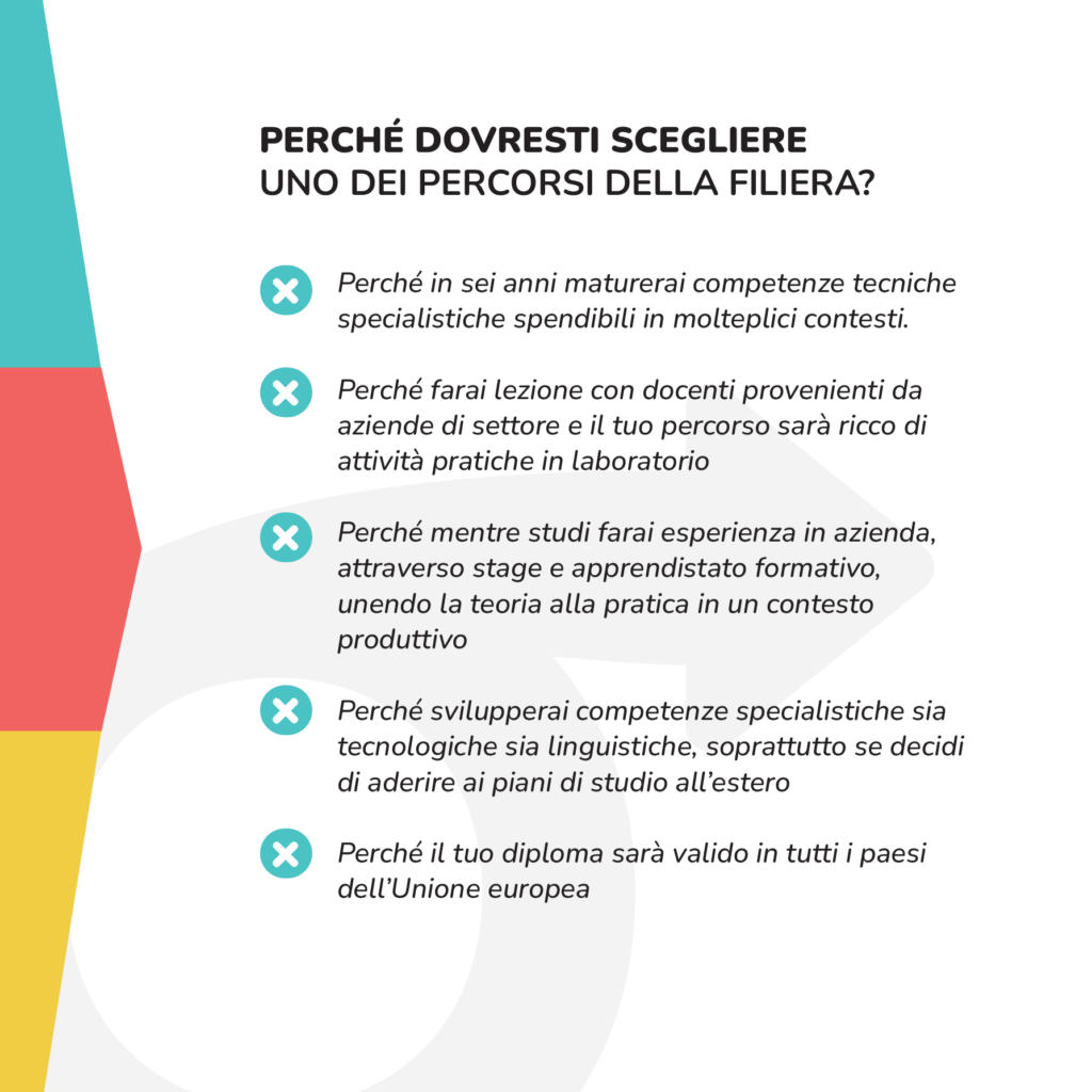 Per ulteriori approfondimenti e dettagli operativi, si rinvia alla sezione dedicata del PTOF dal titolo “Percorsi connessi con la filiera formativa tecnologico-professionale”.