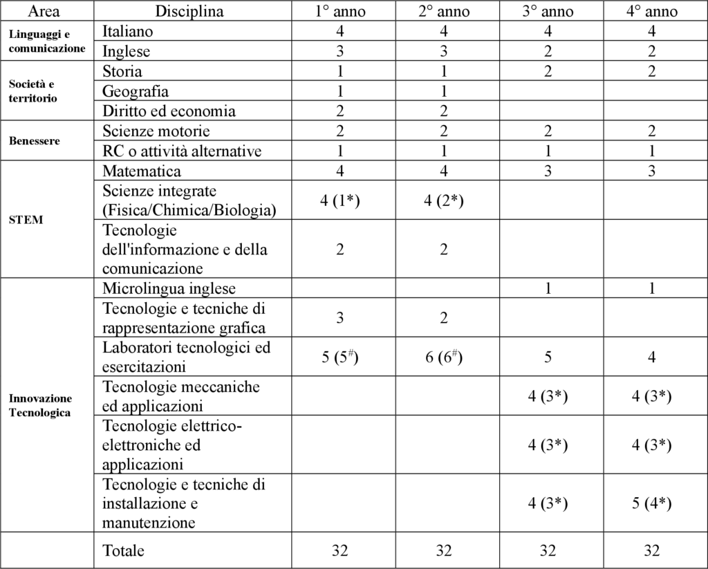 ( * ) Queste ore sono in compresenza con docente ITP di classe di concorso specifica.